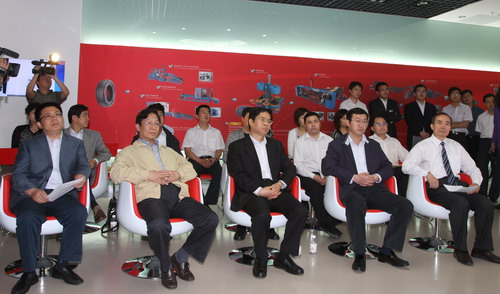 在公司信息化展廳,張焱首先向考察組介紹了產(chǎn)品研發(fā)、產(chǎn)業(yè)鏈發(fā)展模式及公司運營等方面的情況。隨后,信息工程研究所副所長焦清國匯報了公司自主研發(fā)的MES系統(tǒng)以及物聯(lián)網(wǎng)技術(shù)在輪胎企業(yè)中的應(yīng)用。